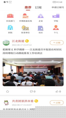 个性化资讯订阅与首页定制:用户首次登录后,系统会引导其选择感兴趣的新闻分类(如民生、财经、文旅、体育等)和关注的本地机构(如特定政府部门、街道办)。基于这些偏好,首页信息流会进行智能排序和推荐,用户后续也可在我的订阅中自由增删,打造专属的信息门户。