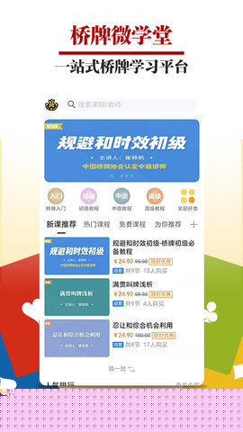 桥牌微学堂是一款专为桥牌爱好者设计的综合性学习软件,普及桥牌知识并系统化提升用户的实战技能,构建了一个从入门规则到高阶竞技策略的完整知识体系,通过整合由多位桥牌名家录制的专业视频课程,将复杂的叫牌逻辑、坐庄技巧和防守要点以动态牌局演示与语音同步讲解的方式生动呈现,课程设计遵循循序渐进的原则,用户可根据自身水平选择不同难度的模块进行针对性训练,从而高效吸收核心知识,显著提升在实战中的分析、判断与决策能力。无论是希望了解基础的新手,还是寻求突破的进阶牌手,都能在此找到适合自己的学习路径,利用碎片化时间实现棋牌技艺的稳步成长。