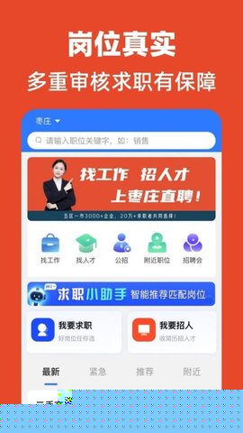 枣庄直聘是一款专注于山东省枣庄市及周边区域的专业人才招聘服务平台,高效连接本地企业与求职者通过深度整合区域内的岗位资源与人才数据,构建了一个信息透明、操作便捷的线上对接枢纽,严格审核企业资质与职位真实性,从源头保障了信息的可靠性,为求职者提供了海量可筛选、可对比的本地化职位,帮助企业高效管理招聘流程,从发布职位到沟通面试实现全链条线上化,显著提升了本地就业市场的匹配效率与用户体验,是推动枣庄地区人才流动与经济发展的重要数字化工具。