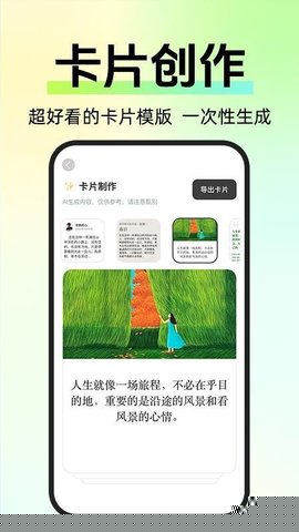 创意卡片与分享物生成:除了纯文本,还内置了简易的图文设计模块。用户可以将生成的精彩金句、观点摘要一键制作成风格多样的数字卡片或简易海报,方便直接分享至各社交平台,实现内容的多格式输出与传播。