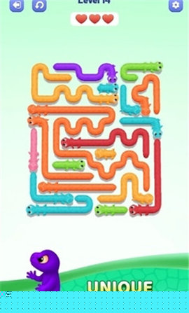 动态与多维的关卡结构拓展了解谜维度。游戏中后期,谜题不再局限于静态的单层网格。玩家将遇到可被壁虎推动或触发移动的障碍物、只能在特定方向通行的单向通道,以及需要在不同层级网格间穿梭的立体结构。这些元素的加入,使得谜题从二维平面路径寻找,演变为涉及状态改变与空间转换的动态逻辑演练。