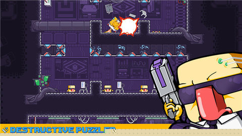 风格鲜明的视觉与场景叙事:游戏采用了Nitrome标志性的像素美术风格,但色彩运用更为大胆,动画细节更加流畅。五个主要场景——废弃工厂、变异实验室、熔岩洞窟等——并非简单的背景板,每个场景都通过环境细节、机关类型和敌人设计,默默讲述着一段背景故事。从工业城市的秩序到地下实验室的混乱,再到自然熔岩的原始力量,视觉风格的转变强化了冒险的推进感和世界观的沉浸感。