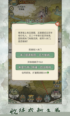 弟子招募与定向培养:通过游历寻访、举办收徒大典、处理特殊机缘事件等方式,可以招募到背景、资质各异的弟子。根据宗门当前需求和弟子特点,将其培养成专精于战斗、炼丹、炼器、外交等不同领域的人才,构建一个功能齐全、梯队合理的宗门人才体系。