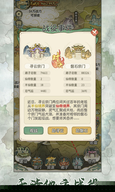 探索与冒险决策:地图上会随机刷新未知秘境、上古遗迹等地点。派遣弟子探索意味着可能获得珍稀功法、法宝,但也可能遭遇强大妖兽或陷阱,导致弟子伤亡。玩家需要评估队伍实力与风险,做出是否探索、派遣何人、携带何物的系列决策。