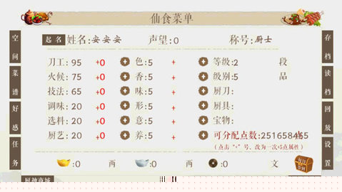 餐馆经营与资源规划:玩家拥有一间初始餐馆,需要定期安排营业以维持声望与基本收入。经营不只是点击按钮,涉及菜单设计(根据食材库存和时令定价)、人员调配(雇佣不同的伙计影响效率)、口碑营销等微观管理。赚取的利润是购买高级厨具、稀有食材和支付修炼费用的主要来源,如何平衡菜品成本、售价与顾客满意度,是前期需要掌握的核心经营之道。
