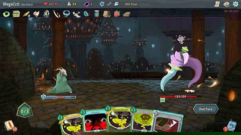 核心战斗循环:每场战斗开始,玩家从专属牌库中抽取5张手牌,并拥有3点能量(可通过遗物等增加)。玩家需在回合内合理分配能量,使用攻击牌对敌人造成伤害,使用技能牌获得格挡值抵御即将到来的攻击,或打出具有特殊效果的能力牌。未使用的卡牌在回合结束时弃置,当牌库抽空后,弃牌堆会重新洗牌形成新的抽牌堆。理解并管理这个抽牌循环是安排出牌顺序的基础。