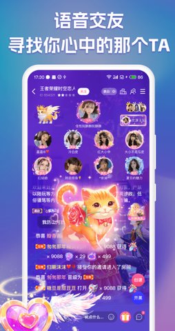 语音房间快速匹配与创建:用户可根据特定游戏、段位区间或热门标签,在首页信息流中浏览海量的实时语音房间,并实现一键秒进。创建房间的流程极为简化,设置好标题、游戏和标签后,即可对外开放,迅速召集队友。