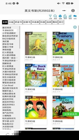 1. 全球精选分级资源库:软件构建了一个庞大且系统的分级阅读体系,内容涵盖从零基础启蒙到自主阅读的多个阶段。所有绘本均来自与全球知名出版社的合作,不仅在语言难度上严格分级,确保与儿童认知发展同步,更在主题上包罗万象,从经典童话、科普认知到情商培养,提供了真正国际化的阅读视野。