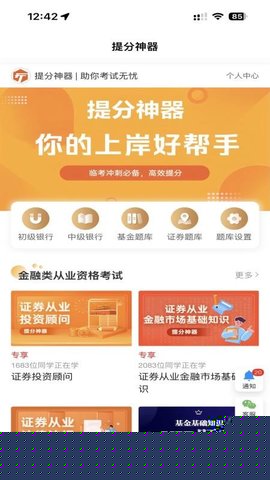 提分神器是一款专为职业资格认证考试设计的综合性在线学习平台深度整合了会计、金融、经济、法律、工程及医药卫生等多个主流领域的权威题库与学习资源,的核心价值在于为备考者构建了一个系统化、智能化且高度个性化的复习环境,通过动态同步最新考试大纲与命题趋势的试题库,确保学习内容的时效性与针对性。其内置的先进算法能够根据用户的练习行为数据,自动规划并优化学习路径,将有限的备考时间精准投入到最需要加强的知识盲区,从而显著提升学习效率与考试通过率,是广大职业考生实现高效备考、成功提分的得力助手。