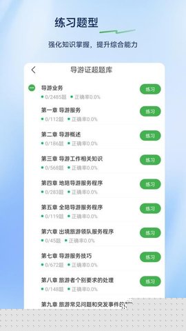 智能章节练习与考点突破功能:用户可自由选择任一考试科目下的具体章节进行针对性练习。系统支持按知识点标签筛选题目,方便用户对某个重难点(如旅行社法律制度、中国古代建筑特点)进行集中强化训练,实现精准打击,快速弥补知识短板。