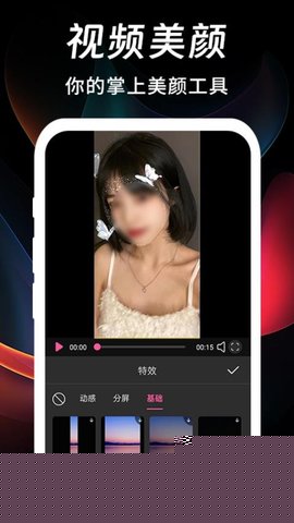 高级视频剪辑与特效合成:支持视频的多段剪辑、速度调整(快放/慢放)、倒放播放。可添加多层滤镜、蒙版效果,并能使用关键帧为贴纸、文字制作复杂的入场、退场及运动动画。