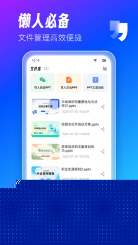 1. 多格式文档无缝导入:软件允许直接上传Word、PDF等多种格式的现有文档,作为生成演示文稿的原始素材,实现从文档到幻灯片的快速转化,有效利用已有工作成果。