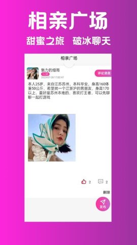 1. 动态广场的智能信息聚合:软件的核心互动区域动态广场,运用智能算法对海量用户发布的个人状态、生活分享及征友意向进行高效聚合与分类展示,形成了一个实时更新、兴趣导向的社交信息瀑布流,极大地方便了用户快速发现与自己有共同话题或生活方式的潜在对象。