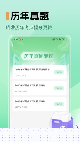 名师精讲视频与考点串讲:软件集成了由资深培训讲师录制的系列视频课程,这些课程并非简单照本宣科,而是针对重难点、易混点进行专题精讲,并结合典型例题深入剖析。考前还会提供考点串讲直播,帮助用户梳理知识体系,强化记忆。