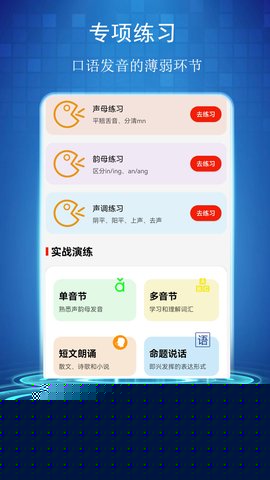 丰富的拓展学习资源:除了应试内容,还整合了绕口令挑战、经典诗词朗诵、新闻播报模仿等趣味模块。这些内容不仅能增加学习的趣味性,还能在更灵活的语言环境中锻炼用户的语感、节奏和流畅度,全面提升口语表达能力。