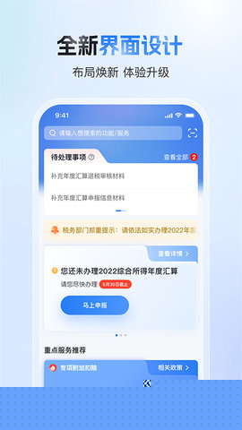 国家税务总局个人所得税是一款由国家税务总局官方权威推出的移动智能税务服务软件深度整合了政策法规实时查询、个人所得税综合所得年度汇算清缴、专项附加扣除信息在线填报、个人收入及纳税明细全面查询以及专业涉税业务咨询等核心功能模块,为全国广大纳税人构建一个安全、便捷、高效的一站式数字化办税平台,显著简化了传统税务办理的复杂流程,提升了办税效率与政策透明度,使纳税人能够随时随地通过智能手机轻松管理个人税务事务,切实享受税收改革带来的数字化便利,是国家推进放管服改革、优化税收营商环境的重要数字化成果。