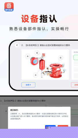 3. 与认证体系紧密衔接:所有训练场景与考核标准的设定,均严格对标国家消防设施操作员职业技能标准及最新的鉴定考核大纲,内集成的海量理论题库与实操考点保持同步更新,使训练具有极强的针对性和实用性,直接服务于用户的职业资格获取与技能等级晋升。