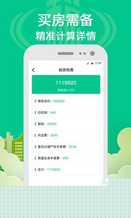 房产交易税费测算:针对购房这一重大财务决策,提供了专业的税费测算功能。区分新房和二手房,用户输入房屋总价、面积、是否首套等信息后,系统会详细列出需要缴纳的契税、增值税、个人所得税、印花税等所有税种的金额,助力购房成本预算。