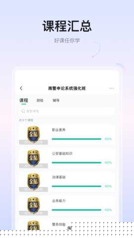 在线课程学习中心:汇集海量结构化课程,涵盖政治理论、法律法规、侦查技术、群众工作、应急处突等各领域,形式包括视频讲座、图文案例、互动课件等,支持进度保存与笔记功能。