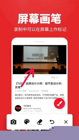 实时画笔标注:在录制过程中,可随时启用画笔工具,提供多种颜色和笔触粗细选择,用于在屏幕上进行实时圈注、书写,增强演示效果。