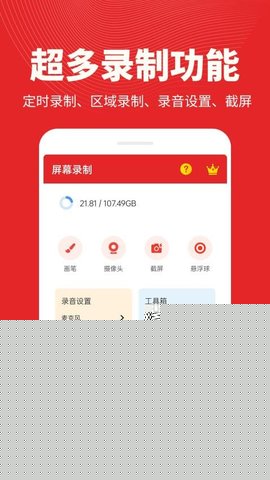 基础屏幕录制:支持全屏或自定义区域录制,可灵活选择是否录制系统声音、麦克风声音或两者录制,满足不同场景的音频需求。