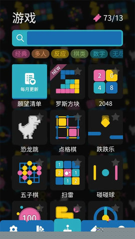收录了多款基于经典玩法规则设计的游戏,能够唤起许多用户的美好怀旧记忆。融合了俄罗斯方块、贪吃蛇等经久不衰的玩法内核,并在操作和表现上进行了现代化的轻量适配,让经典焕发新的生命力。