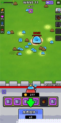 转转防御是一款将策略决策与随机趣味巧妙融合的手机游戏,玩家将化身为史莱姆王国的守护者,核心玩法围绕战斗-资源-转盘的循环展开。你需要指挥史莱姆部队,抵御一波波形态与能力各异的魔物入侵,成功击退敌人可获得金币,这些金币正是驱动命运转盘的关键。转盘每次会随机呈现三种元素技能,你必须从中择一,用以强化你的防御体系。游戏的关卡地形、敌人种类与进攻路线并非一成不变,而是会根据预设的规则动态生成,这就要求玩家不能依赖固定套路,必须根据实时战局、资源存量以及下一波敌人的预告,审慎决定每一次转盘的选择优先级,在爽快的割草清屏快感与深层的战术布局间取得微妙的平衡,最终目标是守护王国核心水晶不被潮水般的魔物摧毁。