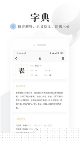 语文词典是一款由深圳市星月时空科技有限公司精心打造的汉语学习与查询工具深度整合了现代汉语的字、词、成语、古文及传统文化知识,构建了一个庞大而系统的数字语言知识库,满足从学生、教师到语言爱好者及研究者的广泛需求,不仅提供了堪比纸质权威词典的准确释义,更利用数字技术的优势,融入了互动学习、智能关联和离线使用等现代化功能。其核心价值在于将枯燥的语言查询转变为一场生动、深入的文化探索之旅,帮助用户在精准掌握语言工具性的领略汉语的博大精深与独特魅力,是随身携带的汉语学习良师益友。