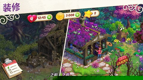 Lilys Garden是一款将经典三消益智玩法与沉浸式庄园模拟经营巧妙融合的移动端游戏。玩家将扮演主角莉莉,在意外继承了一座近乎荒废的祖传庄园后,开启一段充满温情与创造的修复之旅。游戏的核心循环清晰而富有吸引力:通过挑战一个个设计精巧的消除关卡来获取星星、金币等资源,再利用这些资源亲手修缮破败的庭院、装饰房间、种植花卉,让庄园重现生机。随着一砖一瓦的修复,一幕幕关于家族、友情与成长的暖心故事逐渐展开,使得玩家的每一次消除挑战都直接推动着叙事的发展与视觉环境的蜕变,营造出一种玩与建紧密交织、成果可视的独特满足感。