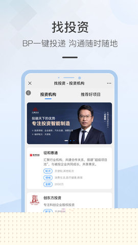 一站式项目投递与管理:创业者能够高效创建并管理自己的项目主页,将商业计划书等资料一键批量投递给平台认证的众多投资机构,并实时跟踪投递状态与反馈信息。