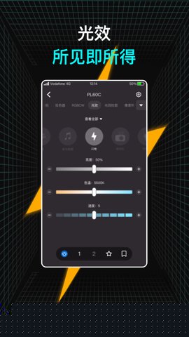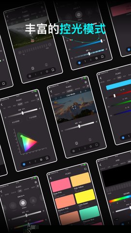 可视化实时调光调色板:软件提供了一个高度直观的图形化控制界面,用户可以通过触控色轮精准选取1600万种颜色,或通过滑块在2500K至8500K的宽广色温范围内无级调节,所有调整均实时同步至灯具,实现所见即所得的调光体验。