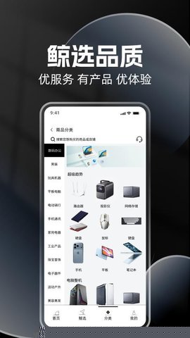 3. 场景化导航体系:区别于传统的简单品类划分,鲸选商城创新性地采用了场景+属性的多维分类导航。除了数码办公、家用电器等大类,还设有开学季装备、露营出行清单、小型工作室搭建等具体生活或工作场景入口,帮助用户基于实际使用目的快速定位到一系列关联商品,实现一站式场景化采购。