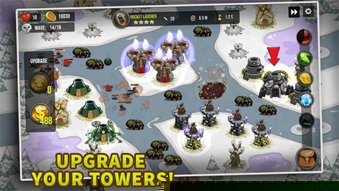融合模拟经营的元素:在核心塔防玩法之外,游戏内嵌了一个简练而有趣的边境营地建设系统。通过成功防守关卡获取资源,你可以升级营地的设施,提升每局初始金币的金库,或是解锁新类型防御塔的工匠学会。这种成长反馈是持久而直观的,将单局游戏的胜利与长期的角色成长紧密绑定,提供了持续的目标感和动力。