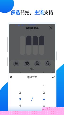 3. 多维度反馈系统:除了精准的听觉节拍提示,还提供了同步的视觉反馈(如动态闪烁的光圈或颜色变化)和触觉反馈(可利用设备振动)。这种多感官协同的提示方式,特别适用于嘈杂的练习环境、乐队合奏前的个人准备,或服务于有特殊需求的音乐学习者。