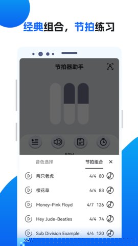 2. 深度定制的音频体验:用户不仅可以选择经典的滴答声,更能从丰富的音效库中挑选或导入个性化的节拍声音,如鼓机采样、木鱼、电子脉冲等。支持独立调节节拍音量的主音与重音,让节奏提示更具层次感和辨识度,适应不同的练习曲风和个人偏好。