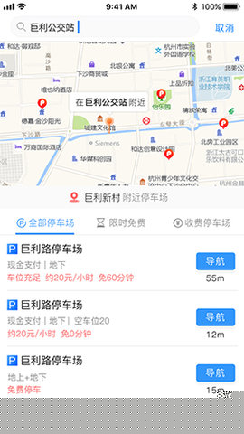 实时车位地图可视化:打开应用,一张覆盖全城的动态停车地图即刻呈现。不同颜色标记着各停车场的空闲程度(绿色代表充足,红色代表紧张),点击任一标记,可详细查看车位数量、收费标准、开放时间、高度限制、是否配备充电桩等关键信息,让全局态势一目了然。