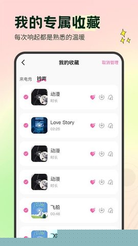 个人云收藏夹与多设备同步:用户可以将心仪的铃声和视频添加到个人收藏夹中。部分版本支持账户登录功能,使得这个收藏列表能够云端同步。用户更换手机或在不同设备上登录时,依然可以快速访问自己积累的个性化资源库。