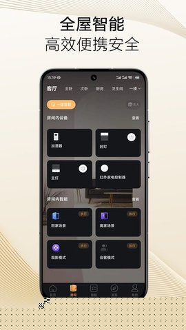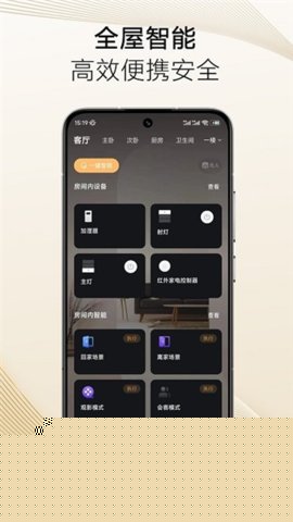 3. 全景式设备状态总览:主界面采用直观的可视化面板设计,实时动态展示所有接入设备的运行状态,如灯光开关、空调温度、门窗开合等。这种集中化的信息呈现方式,让用户无需进入各个子菜单,即可对全屋智能设备的当前状况一目了然。