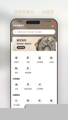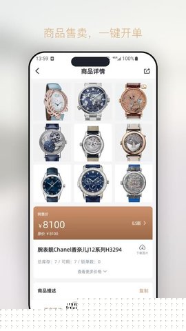 专业级商品档案中心:支持为每件商品创建包含多角度高清图片、详细规格参数、附件文件(保卡、发票电子版)、购入来源、成本价格、当前标价以及完整保养记录的数字化档案。这个档案不仅是内部管理的基础,也可在获得授权后用于向客户进行专业展示,增强销售说服力与品牌专业形象。