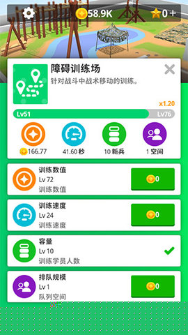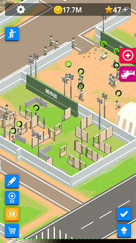 玩法的核心环节是士兵的招募与定向训练。兵营会持续产出新兵,玩家需要将这些新兵分配至不同的训练设施中。步兵训练营可提升近战与防御能力,射击场专注于强化远程火力精准度,而机动训练中心则培养载具驾驶与协同突击技能。玩家需要根据下一阶段战役的预期敌人类型,来规划当前训练的重点兵种。