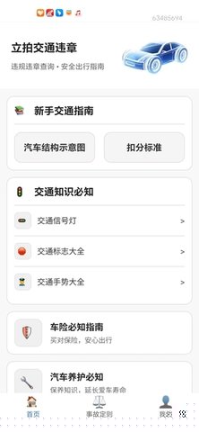 立拍交通违章是一款集交通违章查询、交规知识学习与行车安全辅助于一体的综合性移动应用软件,为广大车主和驾驶者提供准确、便捷、全面的交通信息服务,通过与各地交通管理部门的官方数据平台对接,能够实时同步车辆违章记录,确保用户获取信息的及时性与权威性。除了核心的违章查询功能,还深度整合了系统化的交通法规学习模块,内容覆盖从基础的道路交通信号、标志标线识别,到复杂的路权判定、事故责任划分等专业知识,并辅以大量情景化案例解析,帮助用户深入理解法规条文在实际驾驶场景中的应用,还提供了车辆基础认知、紧急情况应对指南、日常养护知识等延伸内容,从信息查询、知识提升到安全辅助等多个维度,全方位服务于用户的出行生活,提升整体交通安全意识与规范驾驶水平。