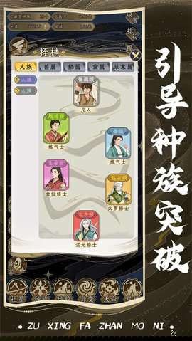 深度且自洽的文明演进机制:文明的成长并非简单的数值叠加。你培育的种族拥有独立的特性、天赋树和社会结构。你需要为他们提供机缘,如发现上古遗迹、引导灵气潮汐或解读星空密文,来触发其技术爆炸或个体觉醒。种族的修行路径(如科技侧、灵能侧、生物融合侧)选择将根本性地改变其应对挑战的方式和发展方向,使得每个文明的成长故事都截然不同。