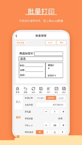 快麦标签是一款功能强大的移动端条码标签设计与打印解决方案将智能手机转变为便携式的专业标签制作工作站,通过蓝牙技术无缝连接兼容的标签打印机,广泛应用于鞋服、珠宝、食品、数码产品以及物流仓储等多个行业的商品标识、价格标注、资产管理及物流单据打印等场景,支持设计包含一维码、二维码、文本、图形和表格的复杂标签,并可直接在手机上进行编辑和批量打印,极大地优化了工作流程,提升了运营效率,尤其适合需要灵活、即时打印标签的零售门店、仓库管理人员及中小型商户使用。