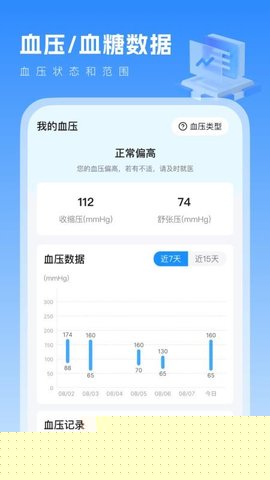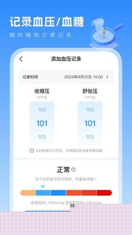 血压血糖记是一款专为需要长期监测血压与血糖指标的用户设计的个人健康管理软件不仅仅是一个简单的数据记录工具,更是一个集数据追踪、趋势分析、健康知识普及于一体的智能健康伴侣,帮助用户,特别是慢性病患者(如高血压、高血糖人群),建立系统、科学的自我健康监测习惯。通过便捷的记录方式、直观的数据可视化图表以及专业的健康资讯,用户可以轻松掌握自身生理指标的变化规律,理解日常饮食、生活习惯与健康数据之间的潜在关联,从而为日常健康管理和就医问诊提供持续、可靠的数据支持,助力实现更主动、更精准的个人健康管理。