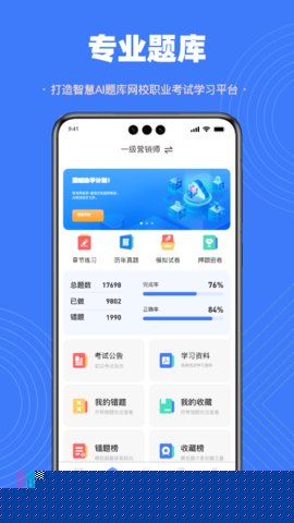 智考典题库是一款专注于职业资格认证考试领域的综合性备考软件深度整合了建筑工程、医药卫生、财会经济、公务员招录、各类职业资格证书以及职业技能鉴定等核心方向的权威学习资源,以海量题库为核心,辅以系统化的视频课程、智能学习规划与详实的学习资料,为备考者构建一个从知识入门、巩固强化到全真模拟的完整学习闭环。其题库内容严格对标官方最新考试大纲,并持续动态更新,确保用户接触到的都是最前沿、最贴近真实考试的命题。通过引入大数据分析与自适应学习技术,能够精准定位用户的知识薄弱点,提供高度个性化的练习路径,从而显著提升学习效率与考试通过率,是广大考生在职业晋升道路上的得力数字化学习伙伴。