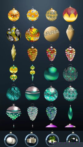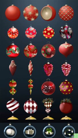 基础装饰操作:编辑界面中央是你的圣诞树,底部是装饰品分类栏。点击如球饰、灯串、树顶星等分类,相应的素材会以图标形式展示。直接点击一个装饰品图标便会自动附着在树上一个默认位置。此时,用单指按住该装饰品可自由拖动到任意树枝上,双指在屏幕上做捏合手势可以缩放其大小,双指旋转则可调整其朝向。