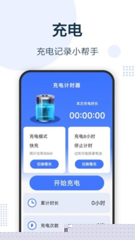 当您需要为设备充电时,请先将充电器连接好。随后,在软件主界面中央找到并点击开始充电的醒目按钮。此时,会自动识别充电状态,并启动顶部的主计时器,开始记录本次充电会话。