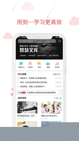 用到云学习是一款组织内部人才培养与发展的数字化解决方案将系统化的知识体系与灵活的学习方式深度融合,为企业员工构建了一个高效、便捷且富有吸引力的成长平台。不仅整合了海量的专业课程与实战案例,更通过创新的互动机制与智能化的学习路径设计,将学习行为无缝嵌入员工的日常工作流程之中。其核心价值在于超越了传统培训的单向知识灌输模式,打造一个持续进化、知识共享的学习型组织生态,从而在提升员工个体职业能力的驱动团队整体绩效与创新能力的飞跃,是企业实现战略性人才梯队建设和知识资产沉淀的关键工具。