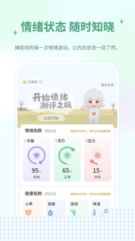 气泡心语是一款深度融合情绪感知与生理健康追踪的智能分析软件通过与主流智能穿戴设备(如智能手环、手表)建立无缝连接,持续采集用户的心率、血氧、皮肤电反应等多维度生理信号,并运用前沿的算法模型将这些客观数据转化为直观的情绪能量图谱与综合健康评分,的核心价值在于将抽象、主观的内在感受(如压力、愉悦、平静)进行量化与可视化,让用户能够清晰看见自己身心状态的实时波动与长期趋势,不仅扮演着一位全天候的私人健康记录员,更能基于积累的海量数据,通过智能分析生成具有高度个人化参考价值的趋势报告与调节建议,从而为用户进行压力管理、情绪调节、睡眠改善乃至整体生活方式优化,提供了一个基于数据的、全新的自我认知与主动干预视角。