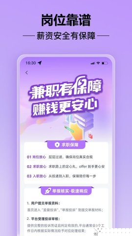 1. 全维度岗位真实性核验体系:平台建立了从企业营业执照审核、招聘者实名认证到岗位信息交叉验证的全链条审核机制,每一则上线发布的兼职信息都经过多重人工与系统筛查,从根源上杜绝虚假招聘与诈骗陷阱,为用户构建了坚实的信任基础。